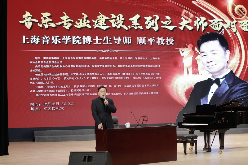 顾平教授造诣高深、风趣幽默、平易近人,正常讲座深入浅出,具有极强的理论性和实用性。讲座最后,顾教授勉励同学们既要在琴房沉得下心,刻苦练习,更要与老师、同学、其他歌唱家沟通切磋,并且不断上台打磨锻炼,才能真正提高自身演唱水平。