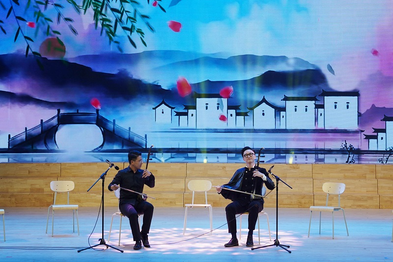 音乐会特别邀请了国家一级演员蔡伟教授带来诗朗诵《祖国是什么》,唤起了观众心中对祖国深切的热爱。二胡合奏《苏南小曲》曲调欢快,旋律悠扬,我校关工委袁能老师与师生带来二胡合奏《赛马》将音乐会推向高潮,赢得现场阵阵掌声。由龙吟合唱团带来的大艺展二等奖作品无伴奏合唱《水色江南》、《跳起我的霍拉舞》引人入胜。音乐会在合唱《追寻》的经典旋律中落下帷幕。