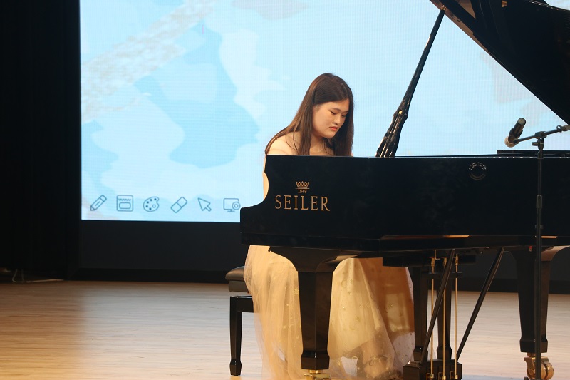 音乐会在克列门蒂轻松活泼的《小奏鸣曲》第一乐章OP.36NO.1中拉开序幕,此曲的音乐风格令人愉悦快乐,旋律大多自由不受拘束,体现了演奏者可爱天真,活泼流畅,优美而充满活力与朝气的性格;《骑士》是一首进行曲风格的乐曲,像军队般威武,带有一种英雄气概,好像骑士们骑在马背上,拿着盾牌的威武形象;《北风吹》是歌剧《白毛女》中最为脍炙人口的唱段,塑造了十七八岁的少女喜儿天真活泼、纯朴善良的形象和盼望爹爹早日回家时期待和忧伤的心情;《INTERMEZZONo.1》是一首思乡曲,一首哀叹青春消逝的悲歌,节奏流动且自由,但又不放肆做作,就像东欧河一样,安静地流淌,慢慢的忧伤;克列门蒂的《小奏鸣曲0p.36-No.2第三乐章》轻快而活泼的快板,与当时的古典主义音乐风格一样更加注重具体音符的色彩和装饰细节,柔和顺畅;《纺织歌》是一首钢琴曲的无言歌,伴奏中描绘出纺织车的声音,曲趣明快,犹如鲜丽的五月晨光;《740 No.1》是一部以手指灵巧的技术练习为主的作品集,演奏者在演奏中,技巧精湛,具有很强的表现张力;《猎歌》的演奏,使观众感受到大自然的清新气息、浩荡的狩猎队伍和人们欢腾愉悦的心情;《f小调练习曲Op.25No.2》是一首带有幻梦意境的小曲,优美、典雅的旋律,把人们带进温柔的、诗一般的意境;《彩云追月》的寓意是仙人驾五彩祥云奔向月宫,这首曲子描写了人们心目中的月宫仙境,烘托了小市民平凡生活的轻松写意;《D大调奏鸣曲KV.311第一乐章》描述了莫扎特人生的巨大变故与悲痛,饱尝了人间世态炎凉的滋味然而,我们在欣赏这部作品时,体会不到一点阴暗和痛苦的声音,只是欣赏到了深沉优美和阳光般温暖的旋律;《随想回旋曲》是其童年时期音乐创作的重要表现,作品以回旋曲形式为主,大量加入了自身情感和浪漫主义元素,让其能够很好的进行抒情表达;《山丹丹花开红艳艳》表达了人民群众对共产党的那份真挚的情感,它凝聚了具有深远源的中华民族音乐审美意识,展示了一幅动人的陕北人民革命的生活图画,同时也反映出当时人们的朝气、乐观、美好的精神面貌;《钟》通过音与音之间的大跳模拟钟声,用变奏的手法淋漓尽致地发挥了华丽的演奏技巧和钟声的效果。
