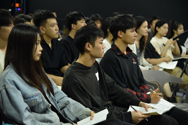 讲座伊始,庄嘉敏导演以一线戏剧工作者的经验告诉同学们舞台表演中行动的重要性,以及演员内部节奏和外部节奏如何统一。蔡伟老师分享了自己多年舞台实践中的真实感受和技术技巧,为同学们阐述什么是表演艺术。活动以互问互答的形式进行,从多角度为学生们提供了表演的技术性指导,给初入校园的21级新生们揭开了表演的神秘面纱。
