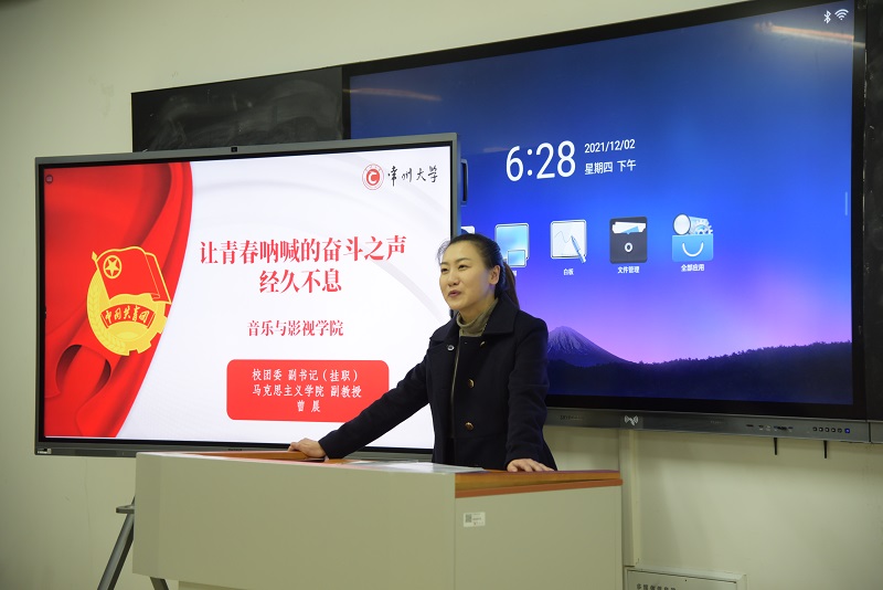 颁奖结束后,曾晨教授为大家带来以《让青春呐喊的奋斗之声经久不息》为主题的授课。曾教授从为谁而奋斗、奋斗精神来源于哪里、怎样去奋斗三个方面大家讲述了奋斗之内涵。最后,她指出,一个时代的性格,是青年代表的性格;一个时代的精神,是青年代表的精神。奋斗精神的来源是中国人血液里的基因也是共产党人的初心与使命,也是当代青年的不懈努力与追求。
