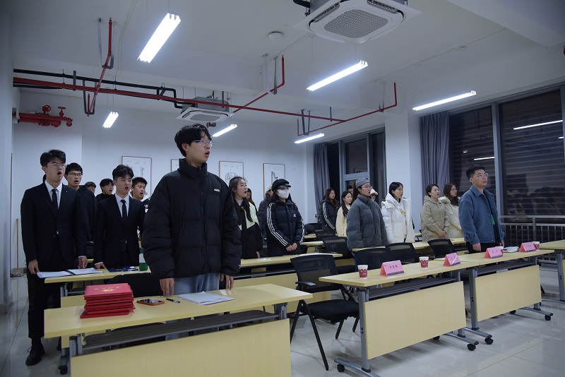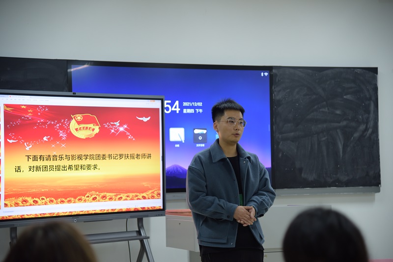 最后一项议程是入团仪式。在全体师生奏唱团歌后,院团委罗扶摇老师带领2021年度新发展团员进行宣誓。优秀团员代表邵宇与新团员代表刘文启相继发言,述说了自己在学习、工作、生活和社会服务中的感触。最后,罗老师对在场的团员提出要求,希望大家能坚实理想信仰,练就扎实本领,在思想和实际中履行团员的责任与义务,为国家发展和社会进步贡献属于自己的力量。