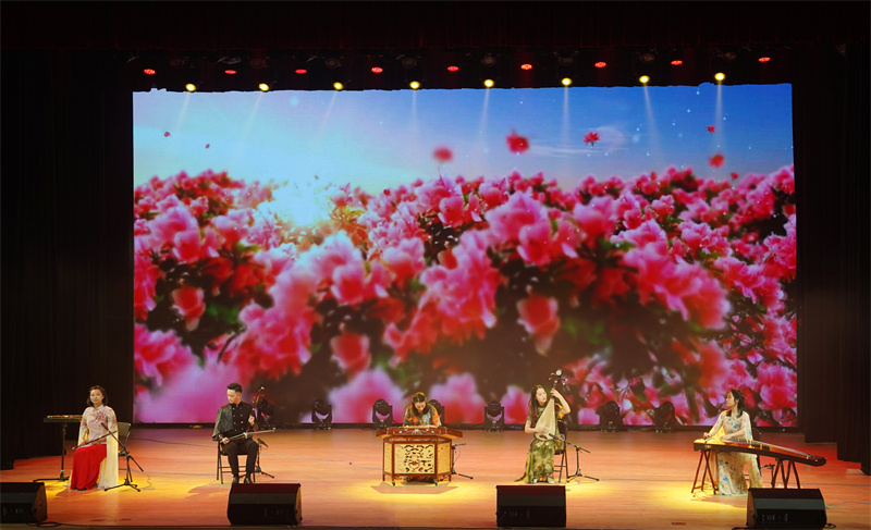 杨琳在致辞中指出,今天这场红色经典视听音乐会,既是用美育凝聚精神、用文化铸造品质,同时也是在艺术殿堂中感悟百年来中国共产党走过的艰辛历程、创造的历史伟业、铸就的伟大精神。近年来,学校深入贯彻落实习近平总书记“要把红色资源利用好、把红色传统发扬好、把红色基因传承好”重要指示,将红色文化育人列为学校三大办学特色之一,积极打造“十红”品牌;同时,注重发挥艺术创作优势,将红色基因融入艺术创作,让广大师生在享受视听盛宴的同时,体验沉浸式思政教育带来的心灵洗礼。2022年,常州大学将牢记初心使命,汲取奋进力量,勠力同心、砥砺前行,为全面建成特色鲜明的高水平地方领军型大学而努力奋斗!