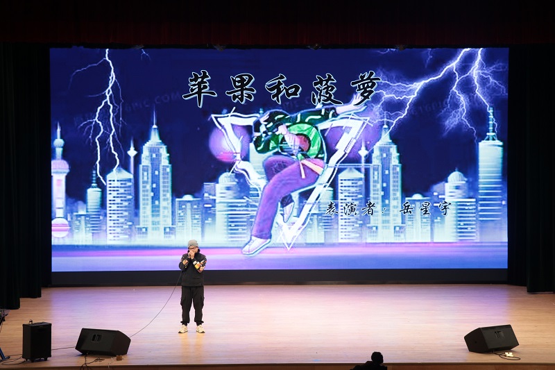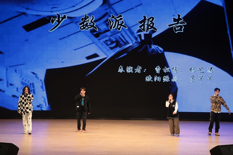 说唱歌曲《少数派报告》歌词铿锵有力,曲调抑扬顿挫,四名歌手以劲爆的表现迅速点燃现场的氛围。舞蹈《I got a boy》中舞者造型惊艳,身姿婀娜,舞步间激扬着青春的韵律。扬琴演奏《离骚》曲意悠扬,音律间仿佛铺展开一幅历史的长卷,深沉且厚重。歌曲《天后》传唱甚广,词里行间朗朗上口,高音部分激扬高亢,富有情感。配音作品《就叫配音吧》中表演者一人分饰多角,声音或稚嫩、或成熟,或温柔、或愤怒,或低沉、或高昂,或沙哑、或明亮,充分诠释了什么叫“一个人就是一出好戏”。歌曲《贝加尔湖畔》、《莉莉安》低音沉、高音亮,舒缓的旋律间表达出无尽的相思与怀念。相声作品《相声小品》中捧哏逗哏配合默契,俏皮的言语令人捧腹大笑,无不彰显出扎实的台词功底。B-BOX《苹果和菠萝》以小小的话筒向观众呈现了不同层次、不同类型的复合声音,场面劲爆,令人震撼。《舞蹈串烧》充分展示舞者的舞蹈功底,舞姿妙曼,表现张力十足。《长城谣》、《鹿be free》歌声嘹亮,高昂的嗓音在礼堂间穿梭回荡,尽显声音的魅力。诗朗诵《不忘初心和党走》中坚定的言语间展现出新时代青年牢记使命、迎头向前的奋进与担当。展演以歌曲《没有理由》拉下帷幕,低沉的语调和轻声的哼唱间,尽是不舍与柔情。