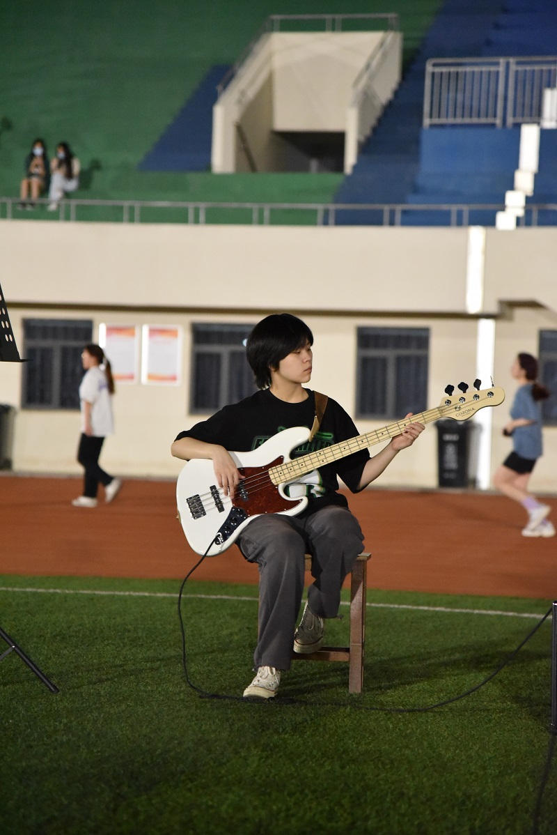 音乐212班的陈凯荣是乐队的贝斯手,她认为音乐演奏的过程是快乐的,而她想把这份快乐带给更多人,草坪音乐会的举办不仅能锻炼自身的专业能力,更能鼓励同学们享受生活,享受音乐,不断丰富校园文化生活,为校园疫情防控贡献自己的力量。今后,这支学生乐队还会持续开展文艺活动,用歌声传递校园正能量,陪伴大家一块抗击疫情,共待繁花盛开!