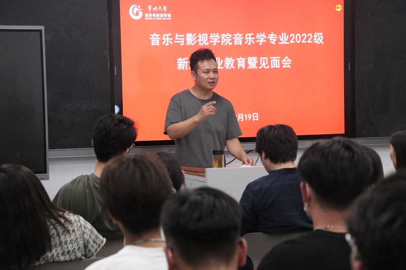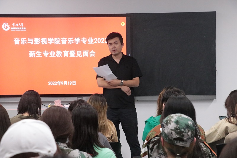 会上,王成文教授就师资力量、课程设置、实践教学、培养方式、考核方式等方面对音乐专业本科生的培养方案进行详细解读,并表达了对22级新生的期望与祝福。副院长赵一兆强调,音乐学子要争做“一专多能”型人才,立足实践,扎实理论基础与专业技能。系主任李久晨表示,本专业主要培养理想信念坚定、厚德博学、创新性的音乐学专业人才,在未来的道路上,希望同学们以此为目标,不忘初心,不忘使命。在互动问答环节,与会教师悉心回答了新生在专业、校园生活等方面的各类问题,并就师生双选、课程选择等环节为学生提供了宝贵建议。