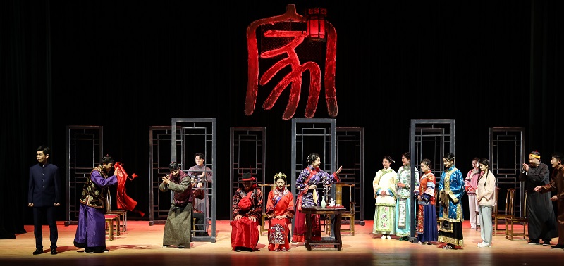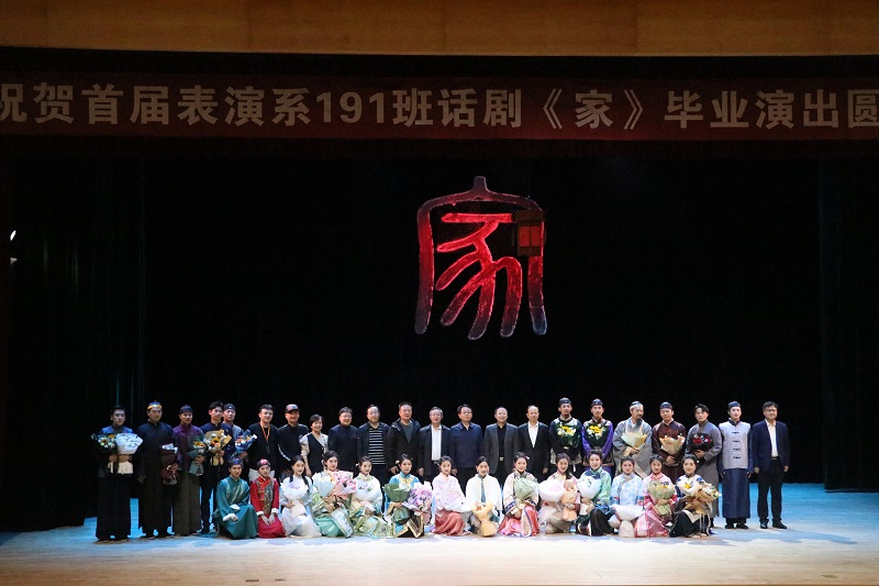 毕业大戏是表演专业学生完整塑造人物,全面掌握表演技巧并完成舞台应用的重要学习阶段。通过大戏,可以检验学生对剧本所拥有的文学艺术的理解程度,对人生社会的认知程度,及对于表演专业的实际操控的程度。本次毕业大戏所选剧本《家》由著名剧作家曹禺先生根据文学大师巴金先生的小说《家》改编而成,故事发生在五四运动前后,描绘封建大家庭中年轻一代的痛苦磨难和成长,舞台上两个多小时的话剧层层递进,描绘出一幅大家族生活的画面,描摹着一个封建家族的溃败衰弱。矛盾软弱的觉新,天真热烈的觉慧,满腹愁绪的梅,善良温柔的瑞珏,刚烈不屈的鸣凤……一个个鲜活的人物在动人的演绎下,仿佛从书中走出。在比分足球比分 表演专业负责人、国家一级演员蔡伟教授、比分足球比分 教师团队指导下,表演191班全体学生展现出成熟的表演技巧与昂扬向上的青春活力,精彩的演出获得在场观众一致好评。