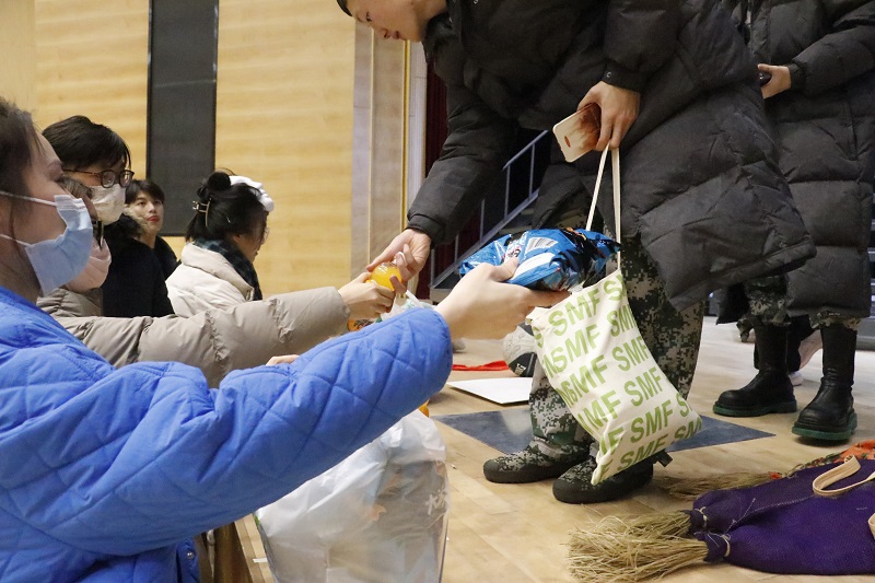 2022年12月8日晚,比分足球比分 分工会为正在排练话剧《月亮与烟火》的表演系191班同学们和表演系的老师们进行演出慰问,送上温暖和关爱。