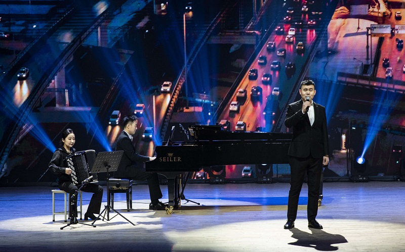 文艺汇演由“春·萌”、“春·颜”、“春·俏”、“春·恋”四个篇章组成,通过音乐、表演、舞蹈、朗诵等形式与春天对话,生动演绎春天的生机活力,传递生命的复苏、万物的生长和对未来的希望。铿锵激昂的民乐重奏《敦煌》拉开了晚会的序幕,乐曲一响起,浓郁的西域风情扑面而来,瞬间点燃现场热情。诗朗诵《春的愿景》讲述了学校建校45年的发展历程与取得成果,感人肺腑,沉挚、坚定、富有现代感,紧凑而充满张力的语言燃烧着生命的火焰。群舞《东方红》气势磅礴,感情细腻,以史诗般的宏伟风格和波澜壮阔的音乐舞蹈场面,生动形象地表现了英勇顽强的中国人民艰苦奋斗,前赴后继的革命精神和英雄气概。江苏省大学生戏剧展演获奖小品《诚信是唯一的出路》生动地诠释了诚信经营、诚信为人的重要价值,精彩的演绎体现了我校美育教育的优秀成果。苏联经典歌曲《莫斯科郊外的晚上》、空灵悠扬的《贝加尔湖畔》和令人热泪盈眶的《人世间》组成的歌曲联唱,充分展示了风格各异的歌曲形式和演绎者变幻高超的声乐技巧。歌伴舞《走进春天》、《春天的芭蕾》用乐舞一体的浪漫表达了常大人对春的祝福,婀娜曼妙的舞姿展现了中国传统文化之美,圆舞曲欢快的节奏把春天的活力表现得淋漓尽致。民乐重奏《春江花月夜》委婉质朴的旋律,流畅多变的节奏,巧妙细腻的情感,丝丝入扣的演奏,引人入胜。群舞《刀郎麦西来甫》凸显异域风情,自由而富有力量,充满了喜悦和幸福。器乐诗歌《时代畅想》饱含深情,乐器和歌声碰撞出最真挚的情感,描绘了伟大祖国在生机盎然的春天里欣欣向荣的大好局面。文艺汇演在合唱《来吧,来吧!春天》、《白驹》的美妙歌声中走进尾声,踔厉奋发趁春早,用青春的旋律唱出了常大最美的声音。