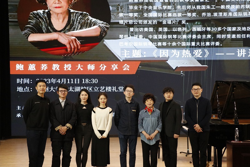 鲍蕙荞进行《因为热爱》主题讲座,通过讲述其钢琴学习历程,以及采访众多钢琴家职业生涯的精彩故事,讲述音乐家们的成长过程、艺术生涯以及对待生活和艺术的态度,生动讲述周广仁、周勤琳、刘诗昆等钢琴大师们的艺术故事,传达艺术家们的奋斗精神和毅力,表达对钢琴事业的深切热爱,呼吁广大师生要热爱音乐,为艺术事业而努力奋斗。