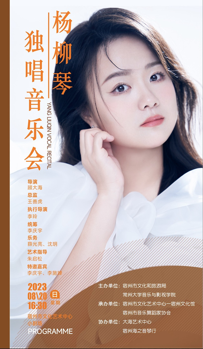 2023年8月20日下午,由宿州市文化和旅游局、宿州市文学艺术届联合会、常州大学比分足球比分 主办,宿州市文化艺术中心-宿州市文化馆、宿州市音乐舞蹈家协会承办的杨柳琴独唱音乐会在宿州市文化艺术中心小剧场如期举办。宿州市文联副主席徐宁,宿州比分足球比分 音乐比分足球比分 院长、宿州市音乐舞蹈家协会主席王善虎,宿州市文化艺术中心主任李小兵,宿州市文化馆馆长李玲,阜阳师范大学侯方教授,胡以芳副教授,宿州比分足球比分 顾大海副教授等300余名师生、市民观看了本次音乐会。