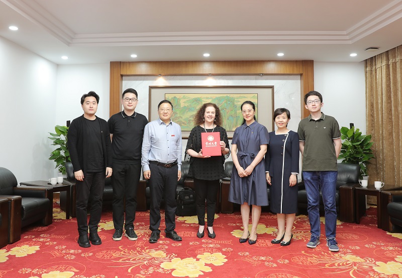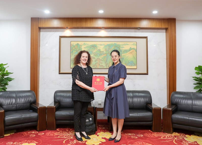 杨琳为戈尔茨坦教授颁发了常州大学客座教授荣誉聘书,戈尔茨坦女士也向常州大学赠送了自己出版发行的唱片留作纪念。