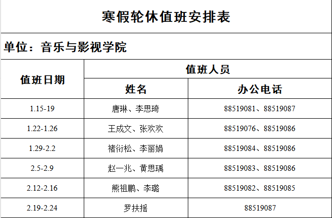 比分足球比分 寒假轮休值班安排