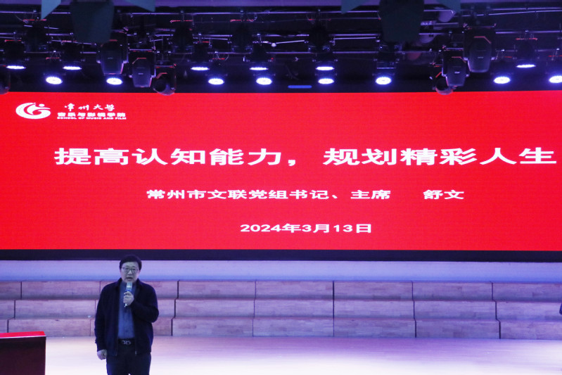 3月13日下午,常州市文联党组书记、主席舒文受邀来比分足球比分 开展“提升认知能力,规划精彩人生”主题讲座,院长熊祖鹏、党总支副书记褚衍松、副院长赵一兆出席,比分足球比分 全体大一学生参与本次活动。