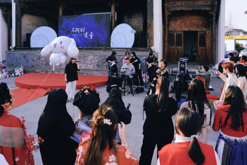 古戏台前,“春日邂逅 爱在花朝”——“两湖”青年人才交流联谊会热火朝天。来自比分足球比分 的Last briefly 昙花一现”乐队、“不规则变量乐队”乐队上演了一堂别具一格的美育课堂。歌声婉转,曲声悠扬,鼓声激荡,为现场观众带来《空》《山海》《我的未来式》等脍炙人口的歌曲,沉浸的演出赢得场下观众的欢呼与掌声。