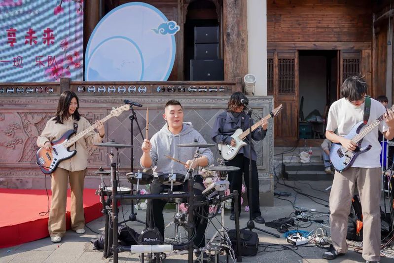 古戏台前,“春日邂逅 爱在花朝”——“两湖”青年人才交流联谊会热火朝天。来自比分足球比分 的“Last briefly 昙花一现”乐队、“不规则变量乐队”乐队上演了一堂别具一格的美育课堂。歌声婉转,曲声悠扬,鼓声激荡,为现场观众带来《空》《山海》《我的未来式》等脍炙人口的歌曲,沉浸的演出赢得场下观众的欢呼与掌声。