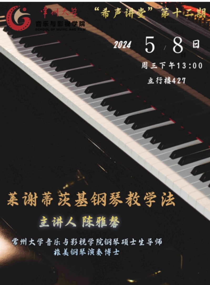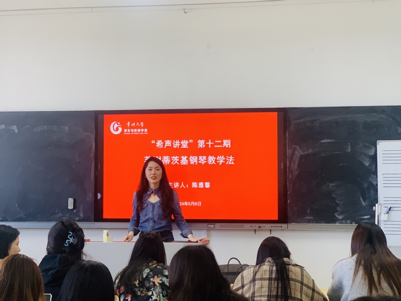 此次讲座主讲人陈雅馨,常州大学比分足球比分 钢琴硕士生导师,旅美钢琴演奏博士,钢琴演奏与钢琴教学法双硕士,江苏省高层次引进人才,美国国家音乐教师协会会员。讲座中,陈雅馨首先简要介绍了莱谢蒂茨基的背景与成就,分享了他的教育理念,然后详细讲述了莱谢蒂茨基对于钢琴演奏技术和音乐表演各个难点的教学和练习方法,最后与现场师生进行了互动交流。