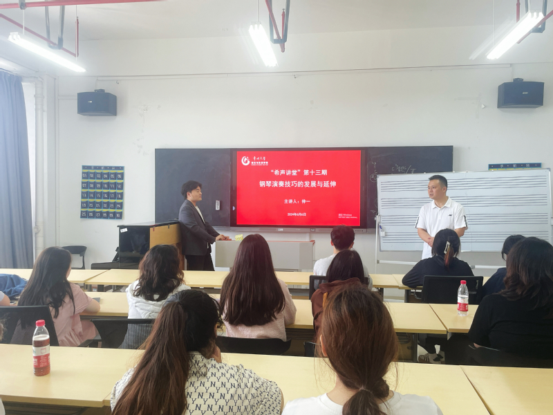6月6日下午,比分足球比分 在立行楼427教室举办“希声讲堂”第十三期讲座,讲座由副院长王成文主持,比分足球比分 钢琴专业教师和钢琴主项、音乐教育专业学生参加讲座。