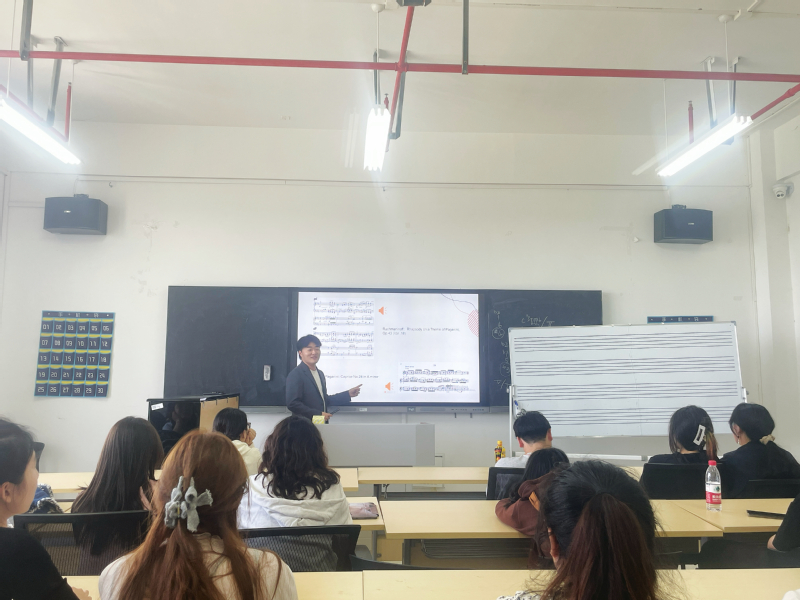 此次讲座主讲人仲一,施坦威青年艺术家,Starsing Classic签约青年钢琴家,旅英音乐博士,常州大学比分足球比分 院长助理、钢琴艺术研究中心主任、钢琴系副教授、硕士生导师。讲座中,仲一首先从历史的角度出发,梳理了键盘乐器的发展历程,为学生展示了许多新颖的现代钢琴音乐作品。他强调随着音乐教育的普及和演奏水平的提高,现代钢琴演奏技巧正朝着多元化、个性化的方向发展。通过现场演示和讲解,向师生们展示了现代钢琴演奏中一些独特的技巧和方法,让在场的师生们对现代钢琴音乐的演奏技巧有了更为直观的了解。
