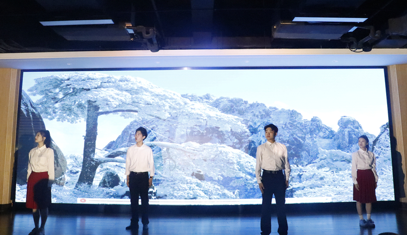 诗词朗诵会由“致英雄”、“致祖国”两部分十个作品组成,师生们齐聚一堂,用激情澎湃的诗词朗诵抒发了对祖国母亲的深情祝福。从雄浑激昂的《吹号者》唤醒黎明,到颂唱《丰碑》般的坚韧精神,从《读中国》的深沉,到《青春中国》的激昂,从《红旗颂》中那抹不屈的红,到《当国旗升起的时候》那份骄傲与自豪,让大家跟随诗词深刻感受祖国75年来的沧桑巨变和伟大成就。