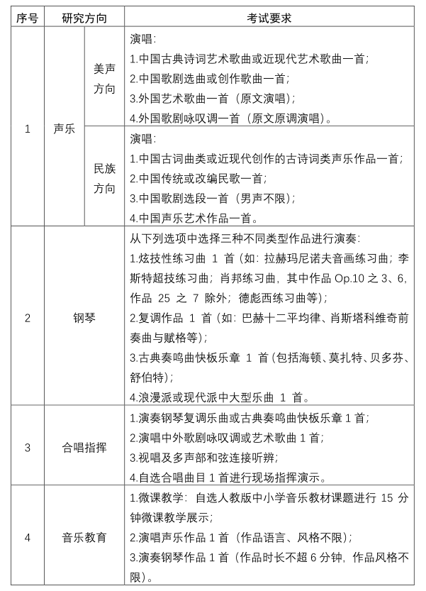 音乐硕士研究生 2025 年度招生复试 “专业综合能力”科目考试要求