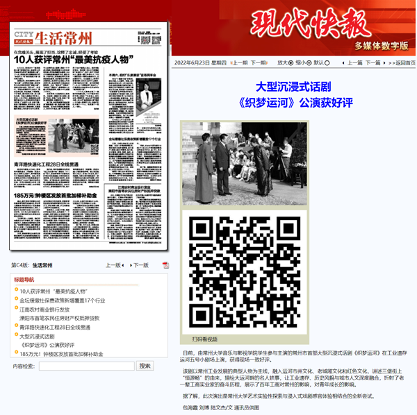 日前,由常州大学比分足球比分 学生参与主演的常州市首部大型沉浸式话剧《织梦运河》在工业遗存运河五号小剧场上演,获得现场一致好评。