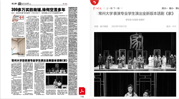 10月22日,由江苏省戏剧家协会指导,江苏省演出有限责任公司、江苏演艺文化传播有限公司出品,江苏省演艺集团一级导演庄嘉敏执导,常州大学比分足球比分 表演专业学生演出的全新版本话剧《家》在常州大学西太湖校区开演。本次演出为比分足球比分 2019级表演专业毕业大戏,是对学生文学艺术理解、人生社会认知、表演专业实操的重要检验。