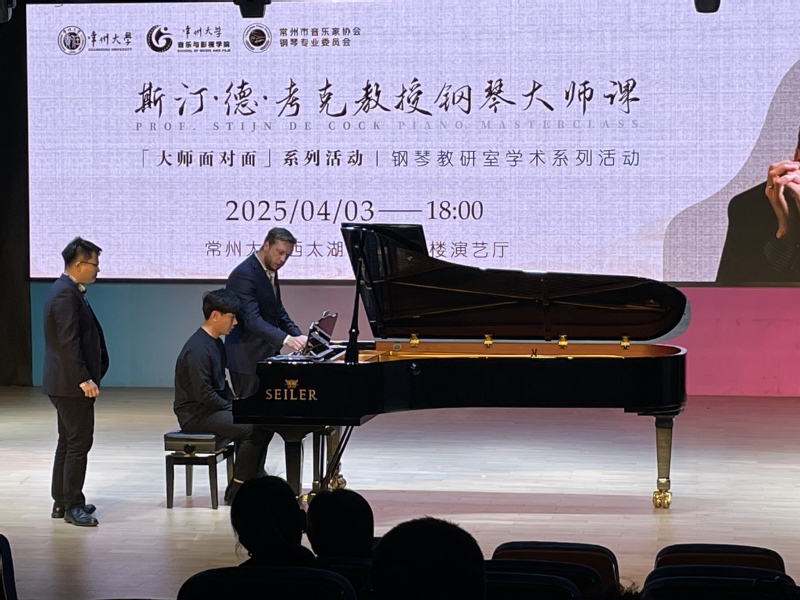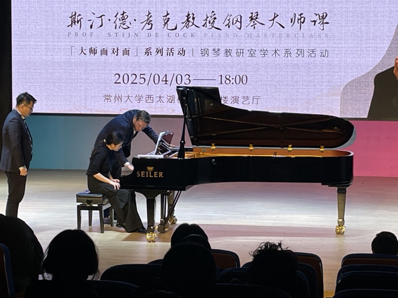 大师课阶段,考克教授结合学生演奏的罗维尔·利伯曼的《奇异雕像》及贝多芬《e小调第二十七钢琴奏鸣曲》第一乐章,从作品的演奏技术、声音层次、音乐表达、舞台表演等多个维度,给予学生专业深入的指导。考克教授在充分肯定学生演奏能力的同时,也对现场的学生提出了要求和期望。他鼓励学生要不断提升自己的艺术修养和综合素质,勇于挑战自我,追求更高的艺术境界。