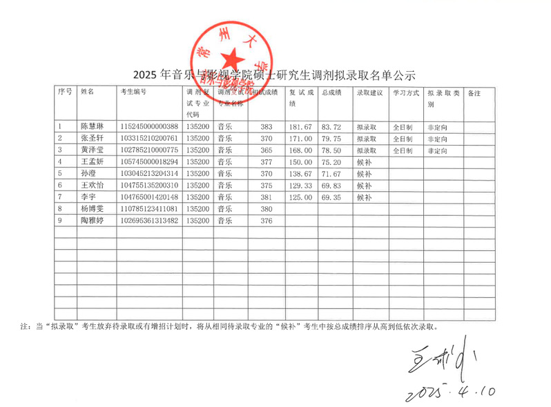 2025年比分足球比分 硕士研究生调剂拟录取名单公示
