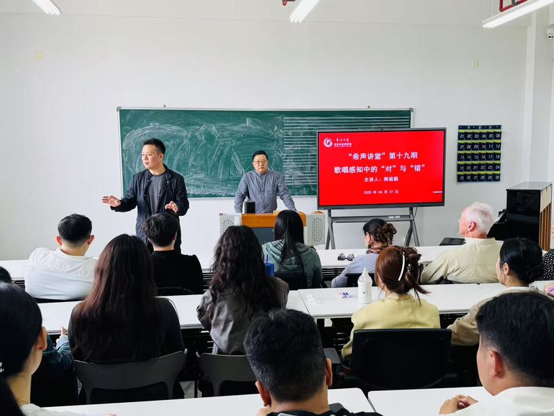 4月27日下午,比分足球比分 在立行楼429室举办“希声讲堂”第十九期讲座《歌唱感知中的“对”与“错”》。讲座由副院长王成文主持,比分足球比分 专业教师、全体研究生及声乐主项本科生参加讲座。