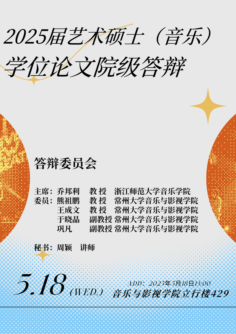 四、答辩地点:常州大学西太湖校区立行楼442会议室