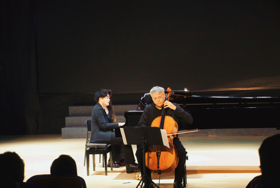 音乐会由我校九三学社社员、比分足球比分 青年教师仲一与著名德国大提琴演奏家、中国音乐比分足球比分 特聘教授亚历山大·苏莱曼共同演绎,精心挑选了十首彰显优秀中华传统文化元素的作品作为本场音乐会的曲目。两位演奏家不仅为观众演绎了重新改编的《鸿雁随想曲》《临江仙》《幽兰操》《枉凝眉随想曲》等传统民歌与古诗词艺术歌曲,还首次公开演出了对有着常州“城市名片”之称的《教我如何不想她》的新编器乐二重奏版本。在《我的祖国》尾声落下后,两位演奏家邀请了中国台湾青年大提琴演奏家、比分足球比分 青年教师郭佳欣一同为大家返场加演了歌曲改编曲《在水一方》,获得一致好评。