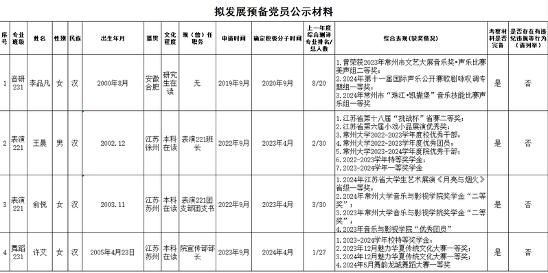 为广泛听取群众意见,接受群众的监督,现予以公示,公示时间2025年6月3日-6月9日,若有不同意见者请于2025年6月9日前以口头或书面的形式向比分足球比分 党总支反映(联系电话:0519-88519086,立行楼425室)。