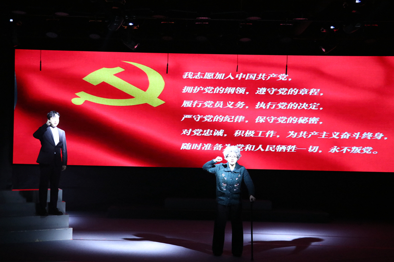 舞台之上,时空交错。《岩火之声》以罗广斌、杨益言经典小说《红岩》为蓝本,通过极具张力的“情境表演”叙事,将革命志士在铁窗内的不屈抗争鲜活呈现。陈然等一个个镌刻于历史的名字,化作了舞台上有血有肉、光辉熠熠的形象。他们的青春热血与无限忠诚,在声光电营造的沉浸式氛围中喷薄而出,让红岩精神所蕴含的坚定信仰与崇高情怀,穿越时空,猛烈撞击着在场每一位党员的心扉。