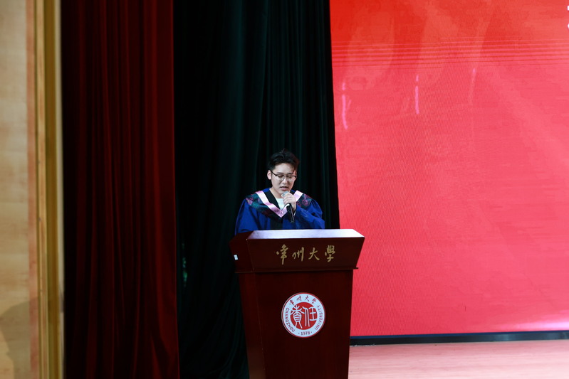 随后,院党总支书记唐琳上台与毕业生代表互赠礼物。院长寄语环节,院长熊祖鹏肯定了毕业生们这四年来的成长,呼吁大家保持初心与热爱,真正成为“德艺双馨、全面发展”的创新艺术人才。学位授予仪式上,熊祖鹏、王成文、柴广育、于晔为每一位毕业生拨正流苏、授予学位。