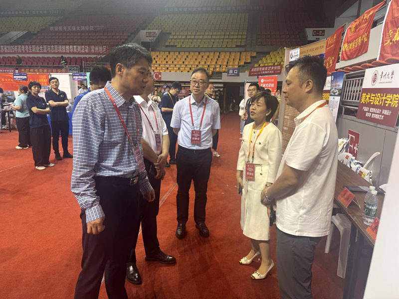 6月25日,江苏省2025年高考考生职业生涯指导与志愿填报指导系列活动(常州分会场)在我校科教城校区体育馆举行,党委副书记、校长陈海群,党委常委、副校长李忠玉,党委常委、副校长周刚等领导现场指导慰问,并与比分足球比分 招生宣传工作人员交流。