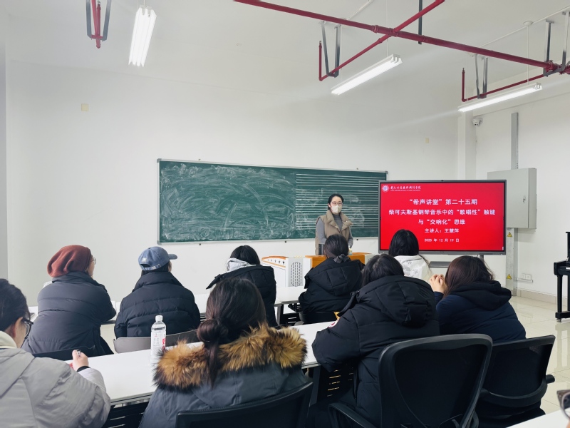 12月19日下午,比分足球比分 在立行楼429室举办“希声讲堂”第二十五期讲座——《柴可夫斯基钢琴音乐中的“歌唱性”触键与“交响化”思维》。主讲人王慧萍,常州大学比分足球比分 - 即时更新的足球比赛比分 钢琴教师,钢琴表演博士。讲座由副院长王成文主持,比分足球比分 钢琴专业教师及全体研究生参加。