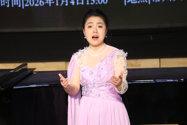 音乐会在陈栋梁同学的演唱中拉开序幕。他首先演绎了中国艺术歌曲《嘉陵江上》,以深沉浑厚的音色勾勒出抗战时期的家国情怀;随后演唱的《水调歌头·明月几时有》则展现了古典诗词与现代作曲技法的完美融合,尽显美声唱法的驾驭能力。杨可萱同学带来了风格迥异的两首作品:中国古诗词艺术歌曲《静夜思》以细腻婉转的线条传递了游子的思乡之情,而朝鲜族民歌改编的《红太阳照边疆》则瞬间点燃了现场气氛,展现了民族声乐的灵动与热情。张文华同学深情诠释了《诉衷情·眉意》中宋代词人的含蓄情思,随后在歌剧选段《思儿》(选自《野火春风斗古城》)中,她以极具张力的表演和醇厚的音色,将母亲对孩子的深切思念与革命者的坚贞不屈表现得淋漓尽致。李品凡同学作为女高音,带来了气势磅礴的《我爱你,中国》与莫扎特歌剧《唐璜》中的经典咏叹调《鞭打我吧》。他在中西作品的转换中游刃有余,既展示了宽广的音域,又细腻地刻画了人物复杂的心理活动。程馨逸同学用陕北民歌《叫一声哥哥你快回来》展现了黄土高原的质朴与热烈,随后的现代艺术歌曲《有多远》则表达了对未来的深沉思考,体现了研一新生在驾驭不同风格作品上的潜力。李君里同学带来了孙梓航作曲的《青玉案·小蓬又泛曾行路》与展现民族风情的《达斡尔人家》,前者意境幽远,后者节奏明快,充分展示了其声音的可塑性与对民族声乐的深刻理解。李奕瑾同学演唱了歌剧《小二黑结婚》的经典选段《清凌凌的水来蓝莹莹的天》,以地道的民族唱法韵味再现了经典人物形象,随后的《田野的春天》则唱出了新时代的蓬勃朝气。梁喻思同学首先以陕北民歌《信天游》展示了高亢嘹亮的嗓音特质,紧接着的《爱莲说》则风格一转,用清丽脱俗的音色诠释了“出淤泥而不染”的君子之风。兰心怡同学带来了新疆哈萨克民歌《燕子》与歌剧《伤逝》选段《一抹夕阳》。展现了浓郁的地域风情;在《一抹夕阳》中则细腻地表达了女主人公子君对爱情与理想的执着追求。汪权同学演唱了意大利古典艺术歌曲《被禁止的音乐》与中国当代艺术歌曲《幽兰操》。他在《幽兰操》中以沉稳大气的台风和深邃的音色,完美诠释了韩愈笔下的君子品格。最后,钟笑思同学以苏轼名篇《江城子·乙卯正月二十日夜记梦》寄托了深沉的悼亡之情,再歌剧《伤逝》选段《风萧瑟》中展示了声音的爆发力和充沛的情感,将音乐会推向了高潮,为本次期末音乐会画上了圆满的句号。