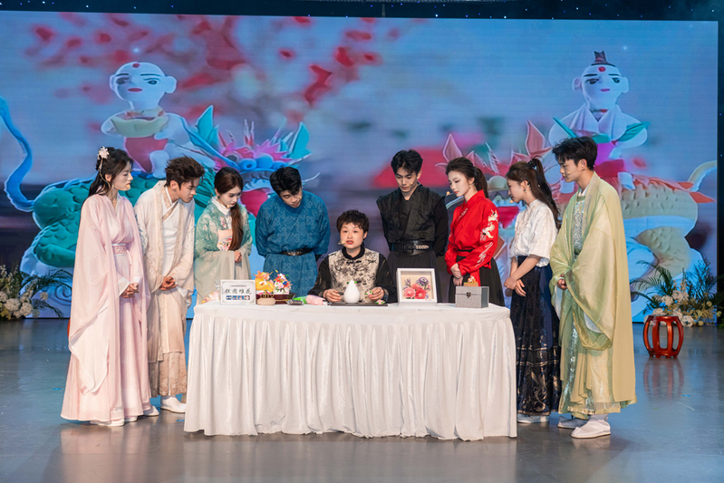 晚上七点,歌会在歌曲《刀剑如梦》中拉开帷幕,激昂的旋律、洒脱的唱腔瞬间点燃现场氛围。“侠风傲骨”“诗韵流芳”“匠心遗韵”三个篇章中,《关山酒》《天下》等歌曲传递家国情怀,《入画江南》《知否知否》演绎江南雅致与诗词底蕴,《青丝》缠绵悱恻,《但愿人长久》寄情明月,一首首融入传统文化元素的歌曲,将古韵之美与青春之声交织融合。其间,非遗展示表演与互动环节穿插进行,让观众在视听盛宴中感受匠心传承的魅力。